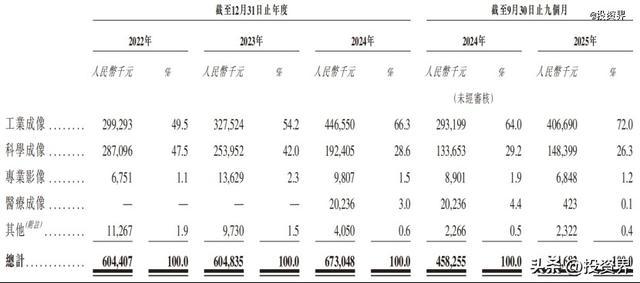 大部分收入来自工业成像板块,占比从2022年的49.5%提升至最新的72%,其次是科学成像,2025年前三季度贡献了约26.3%的营收。专业影像、医疗成像及其他业务,几乎可以忽略不计。